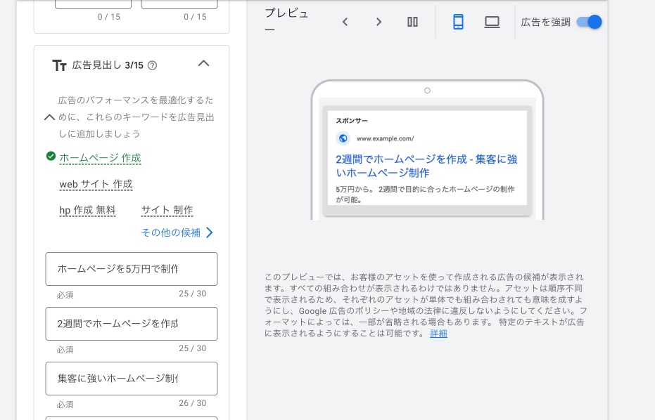 6.広告文の設定