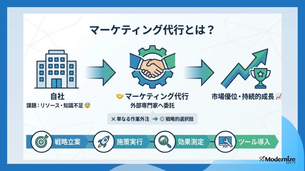 マーケティング代行とは、企業のマーケティング業務の一部または全体を、外部の専門企業やプロフェッショナルに委託するサービスを指します。