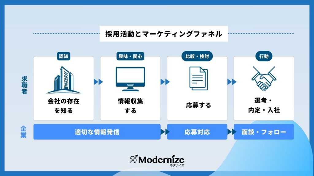 近年はマーケティングファネルの考え方を企業の採用現場に取り入れる動きが加速しています。