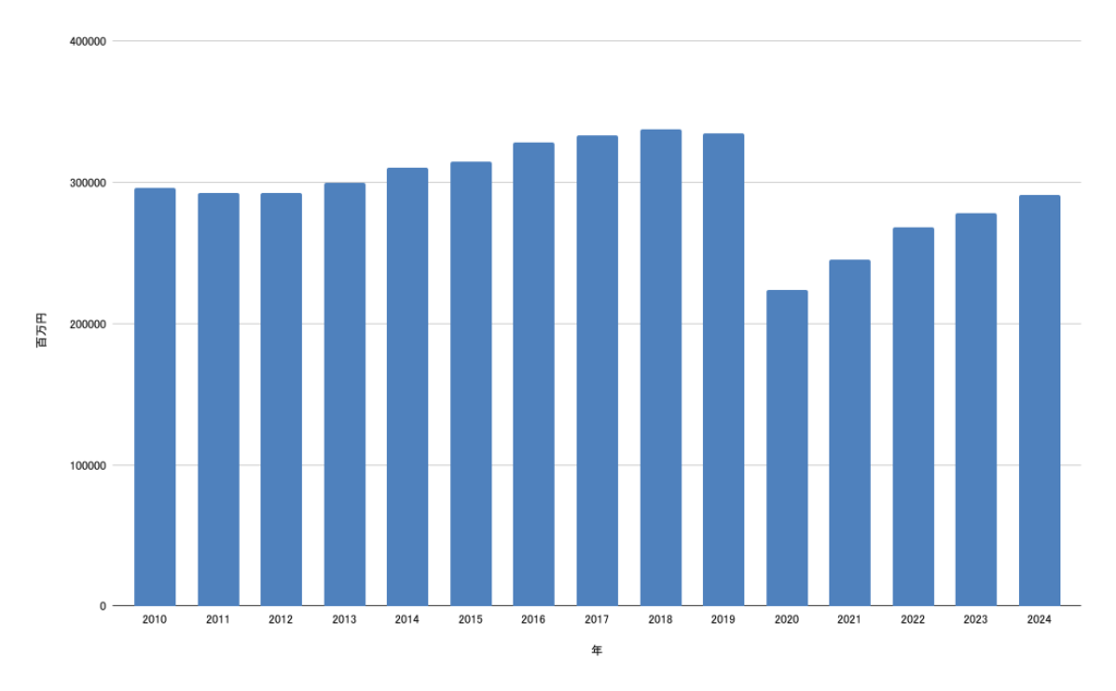政府の統計によれば、「フィットネスクラブ」業界全体の売上高は、2018年頃までは上昇傾向にあり、コロナ禍で大きな打撃を受けたものの、ここ数年は、急速に勢いを取り戻しています。