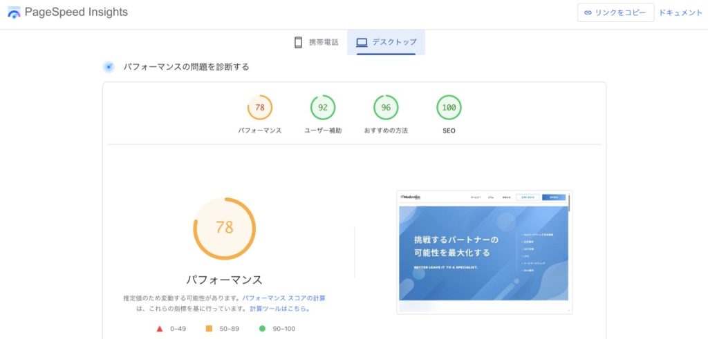 - GoogleのPageSpeed Insightsの読み込み速度は及第点か