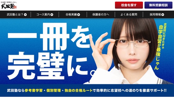 以下では日本有数の学習塾「武田塾」がどんなマーケティング施策を行っているのか、第三者の視点で確認します(確認日時:2025年10月)。